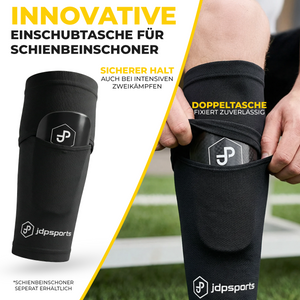 Performance Schienbeinschoner Strumpf mit Einstecktasche, 2 rutschfeste Schienbeinschonerhalter